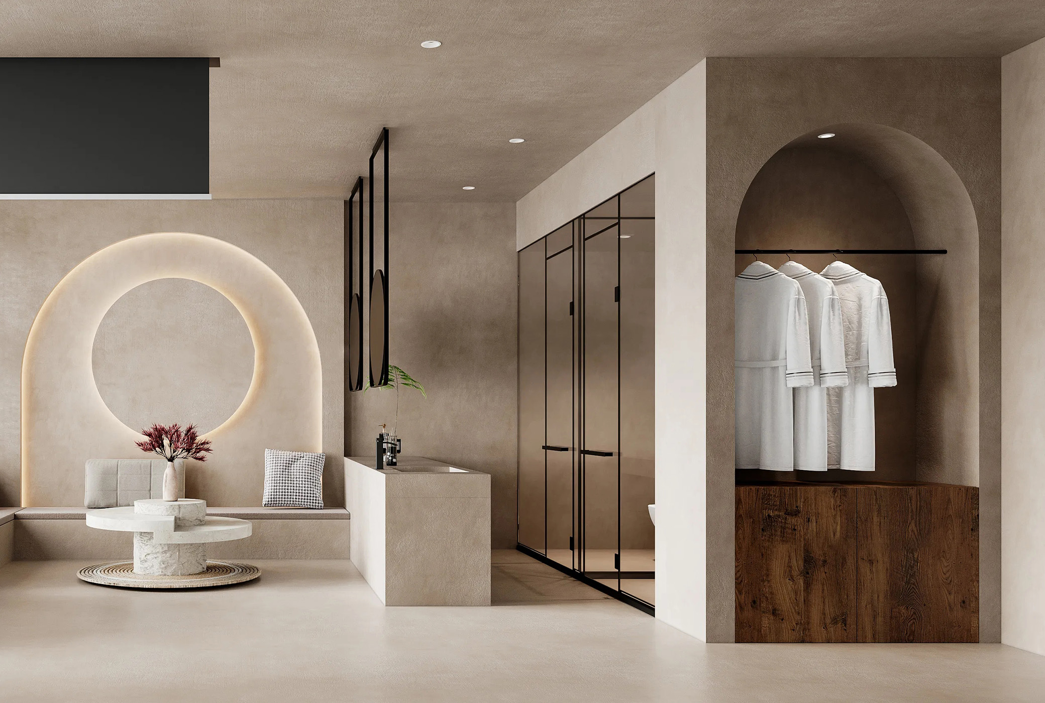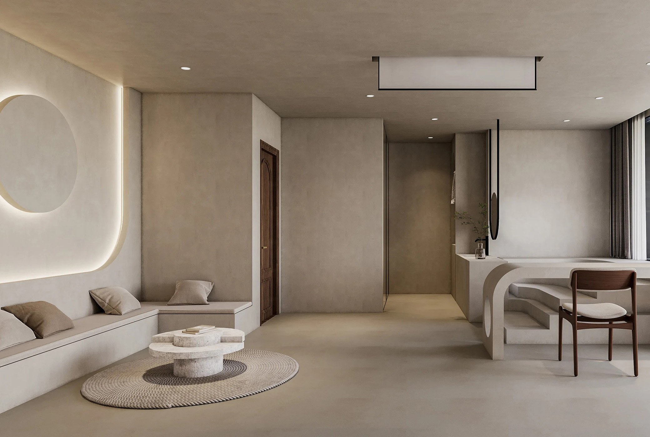 融合共生的创新哲学:品牌尊重并研究中国传统石灰工艺的透气、抗菌等天然特性,并运用现代科技对其进行量化、优化与重塑,实现了古法智慧在现代家居环境中的高品质再现。